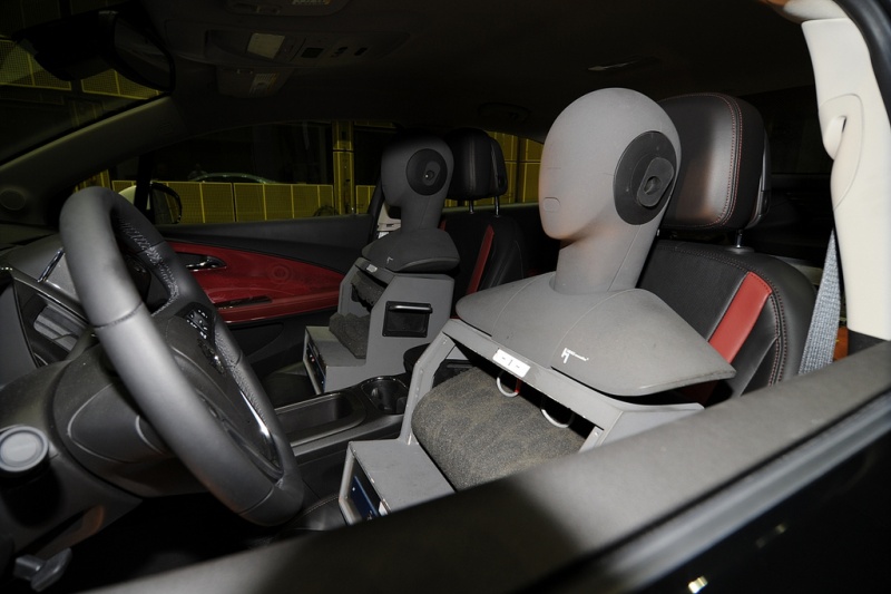 Par la même occasion, les bruits aérodynamiques sont mesurés, puisqu'il est possible d'avoir un vent simulant le déplacement de la voiture, sans bruit de roulement. Ils sont mesurés avec des mannequin spéciaux comme sur la photo ci-dessus.